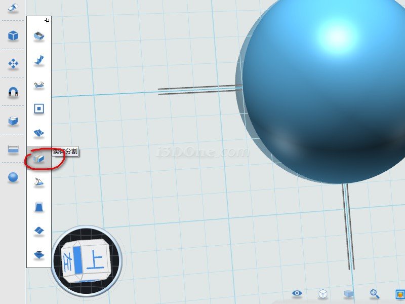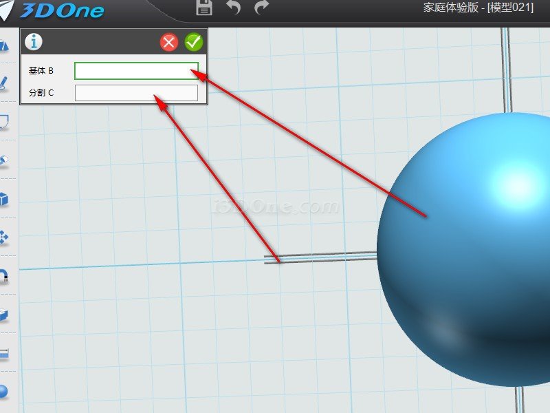 8.點擊實體分割工具,基體b選擇球體。分割體選擇草圖。