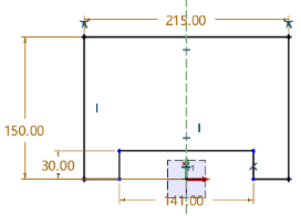 2、單擊繪圖按鈕,繪制如圖2所示繪制中心線和線框。單擊草圖工具欄中圓角按鈕,在圖3所示位置添加半徑為10mm的圓角。