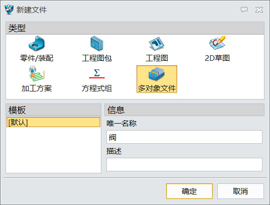 第一步,新建一個名稱為閥的多對象文件,如圖1所示。