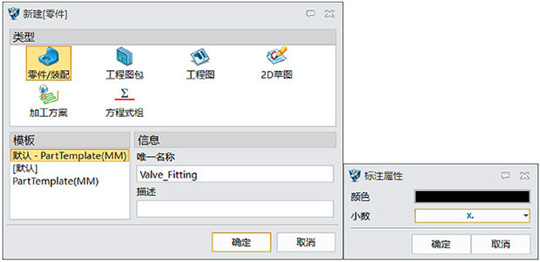 第七步,新建一個名稱為Valve_Fitting的零件,設置標注屬性為整數,如圖7所示。