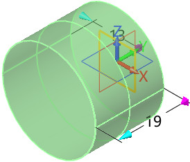 第八步,使用圓柱體,創建一個中心在0,0,0,半徑為13mm,長度為19mm的圓柱體,對齊平面為XZ工作平面,如圖8所示。
