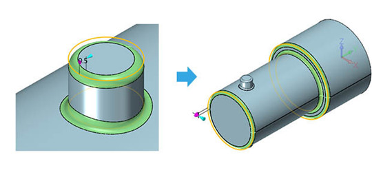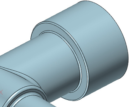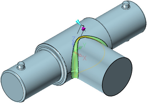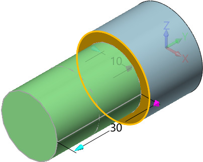 第九步,接著創建一個中心在上步柱體端面,半徑為10mm,長度為30mm的圓柱體,和原造型進行布爾加運算,如圖9所示。