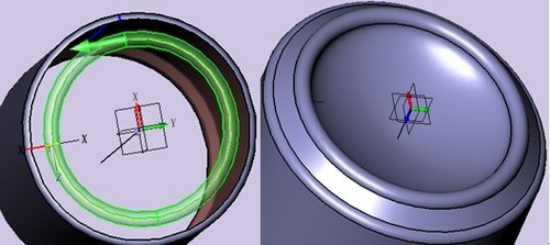 再在頂部畫出拉環的輪廓,選中該輪廓進行實體拉伸,用面修剪功能把拉環缺口修剪出來。